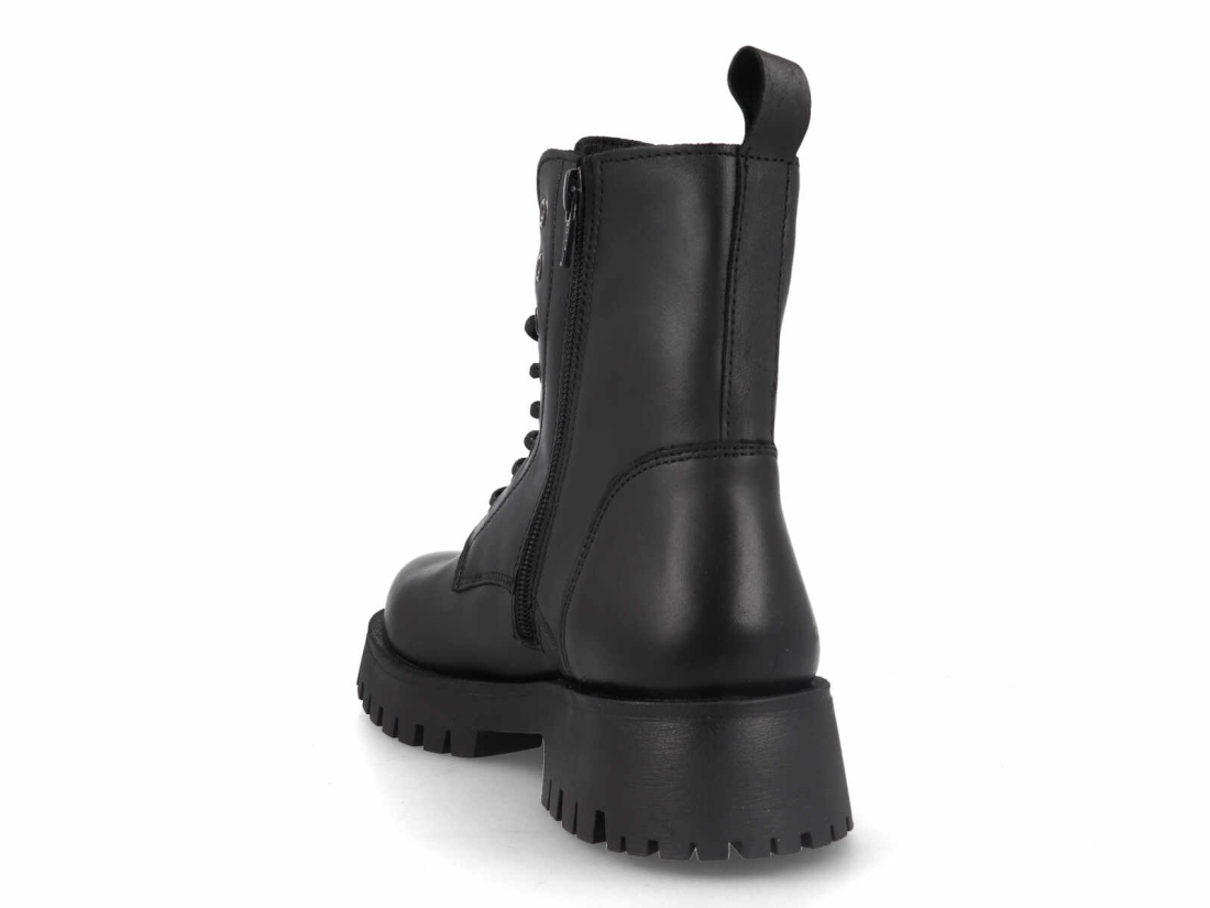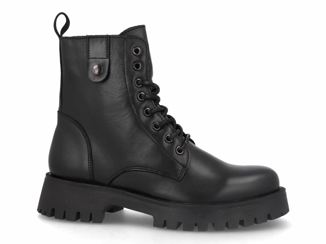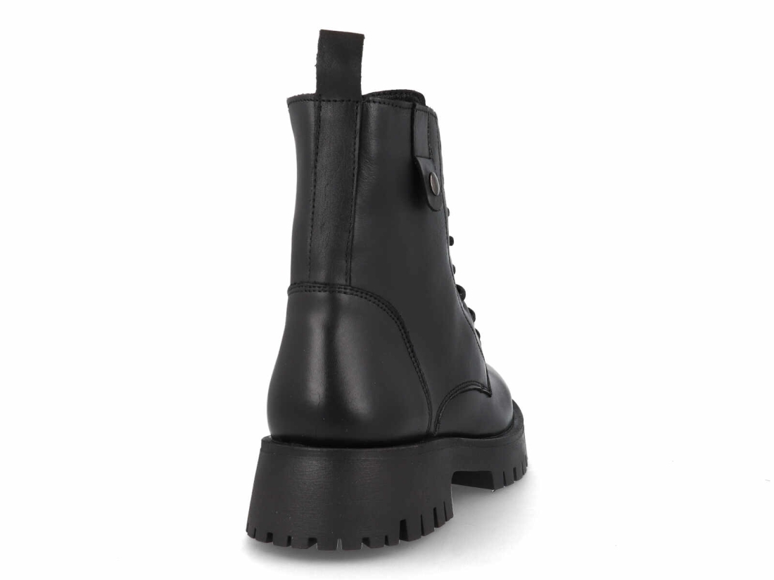 Fabricado en un material de acabado suave y de aspecto premium, este botín ofrece una gran durabilidad, resistencia al uso diario y un tacto cómodo desde el primer momento. Su diseño incluye un sistema de cordones con ojales metálicos, que no solo le da carácter a la pieza, sino que permite un ajuste firme y personalizado.