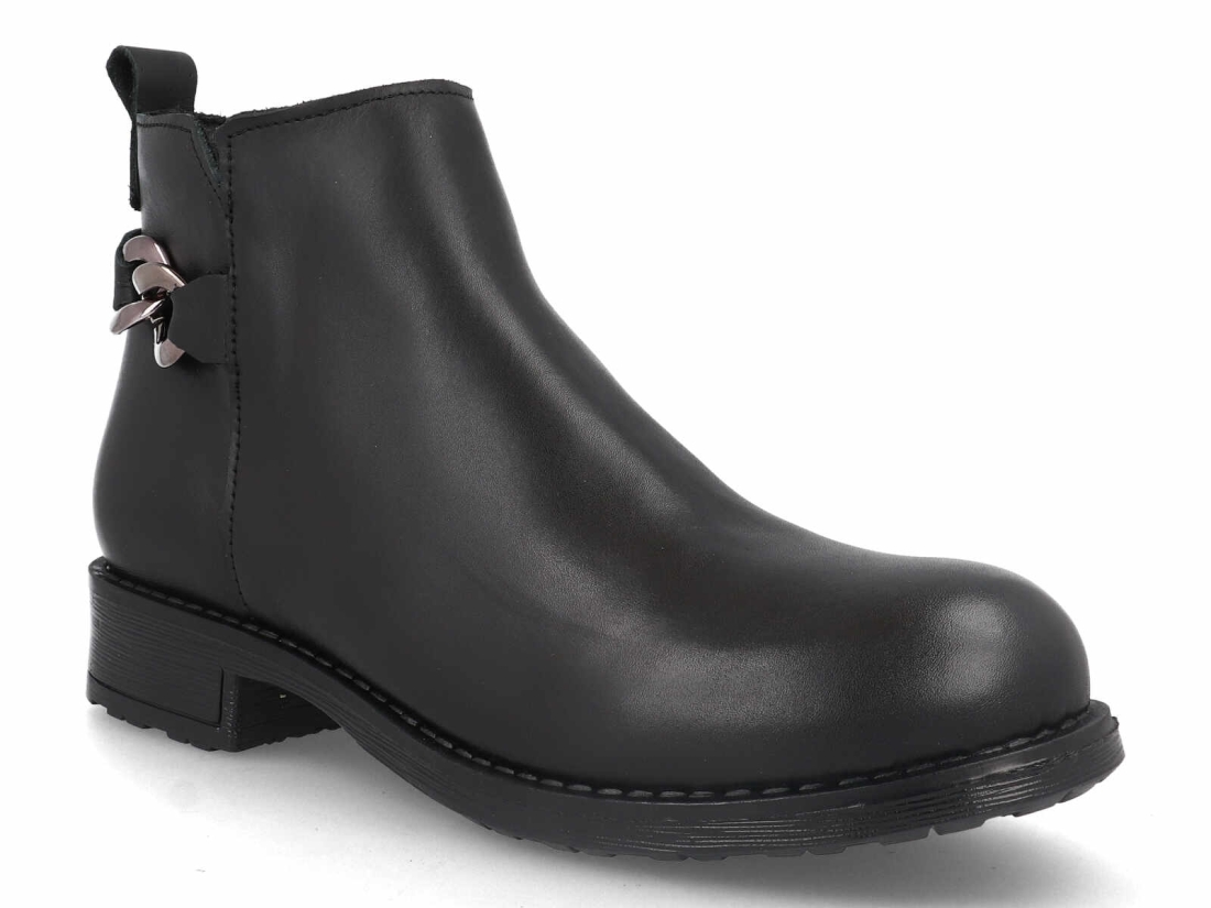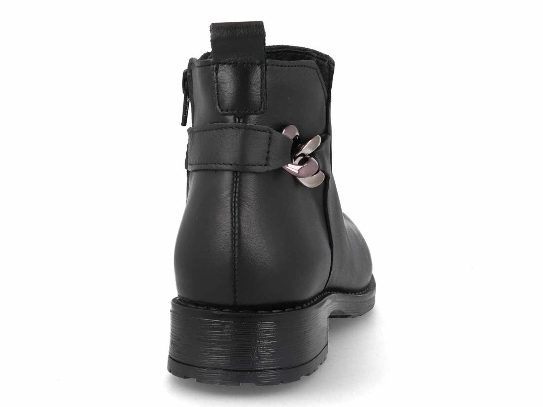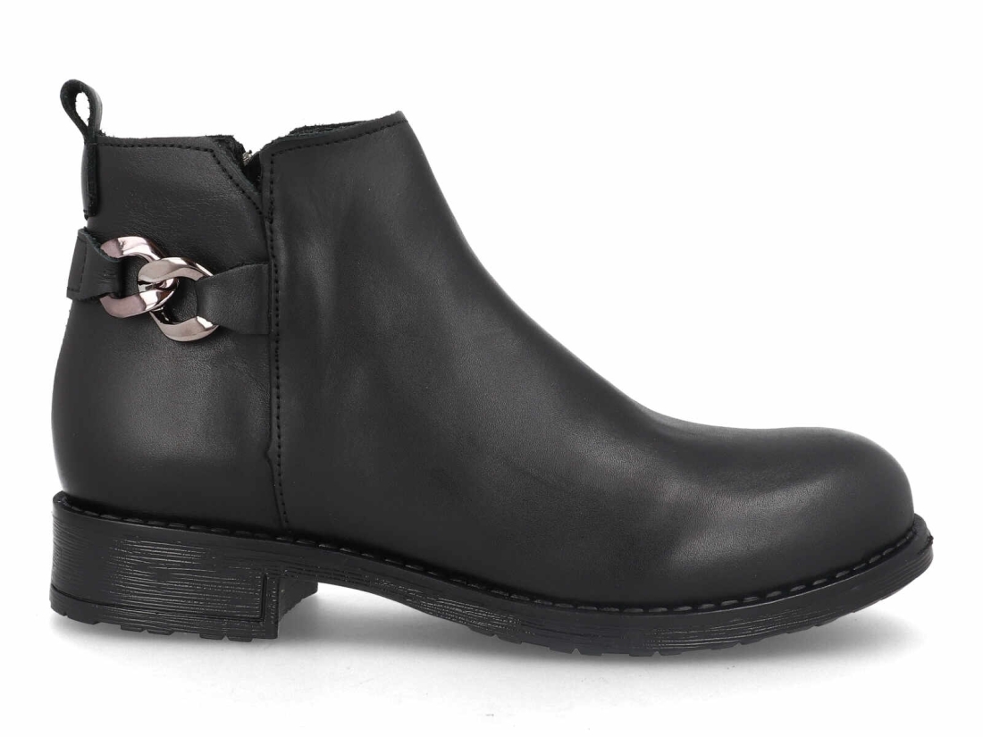 Fabricado en un material suave y resistente, ofrece una sensación de confort desde el primer uso. Su acabado mate aporta un estilo sobrio y elegante, mientras que el detalle lateral de cadena metálica en tono rosado añade un toque distintivo y sofisticado que realza la personalidad del botín sin resultar exagerado.