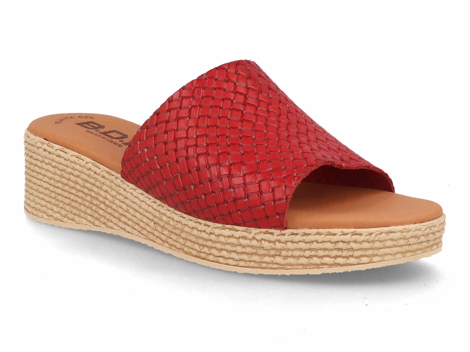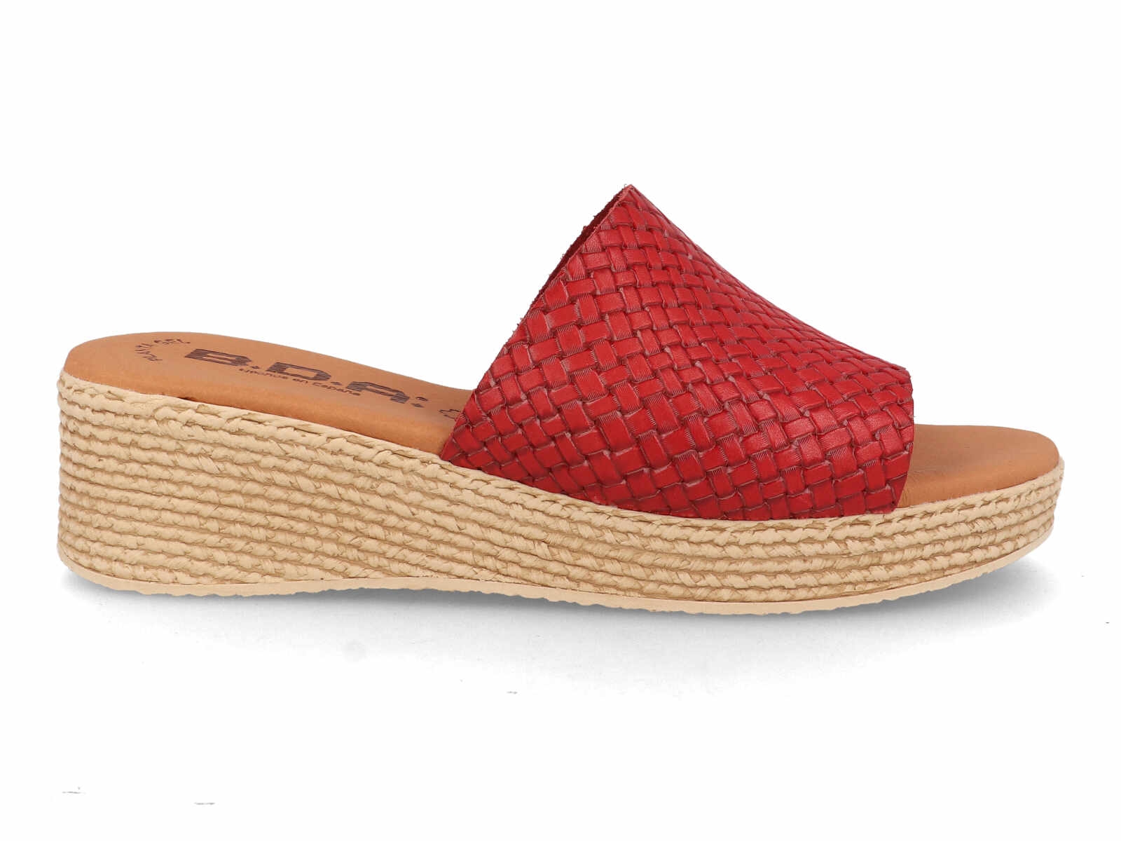 Descubre la combinación perfecta de artesanía y tendencia con las sandalias BDA 4010 Rojo. Diseñadas para la mujer moderna que valora la calidad, estas sandalias de plataforma destacan por su acabado en piel de primera calidad y su icónica suela de aspecto trenzado, un imprescindible de la temporada estival.