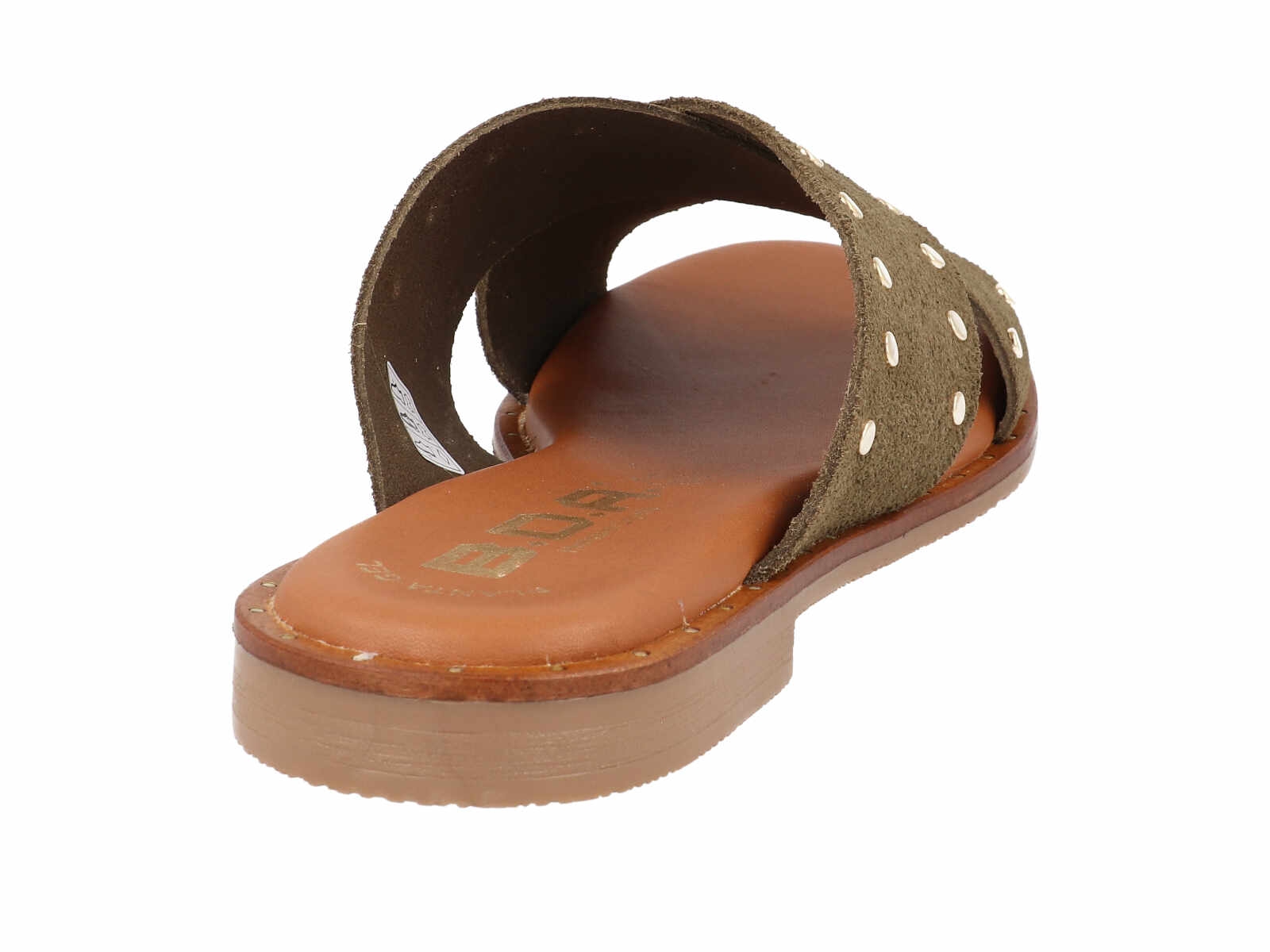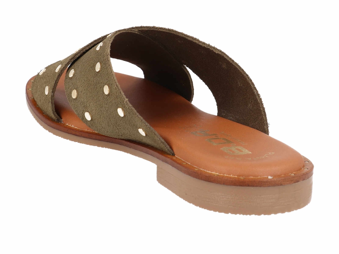 Eleva tu look diario con las sandalias planas BDA 11658 Caqui, el calzado esencial para este verano. Diseñadas para la mujer que busca un equilibrio entre comodidad y tendencia, estas palas destacan por su diseño de tiras cruzadas en piel de serraje de alta calidad y un sofisticado detalle de tachuelas doradas que aportan un aire moderno y bohemio.